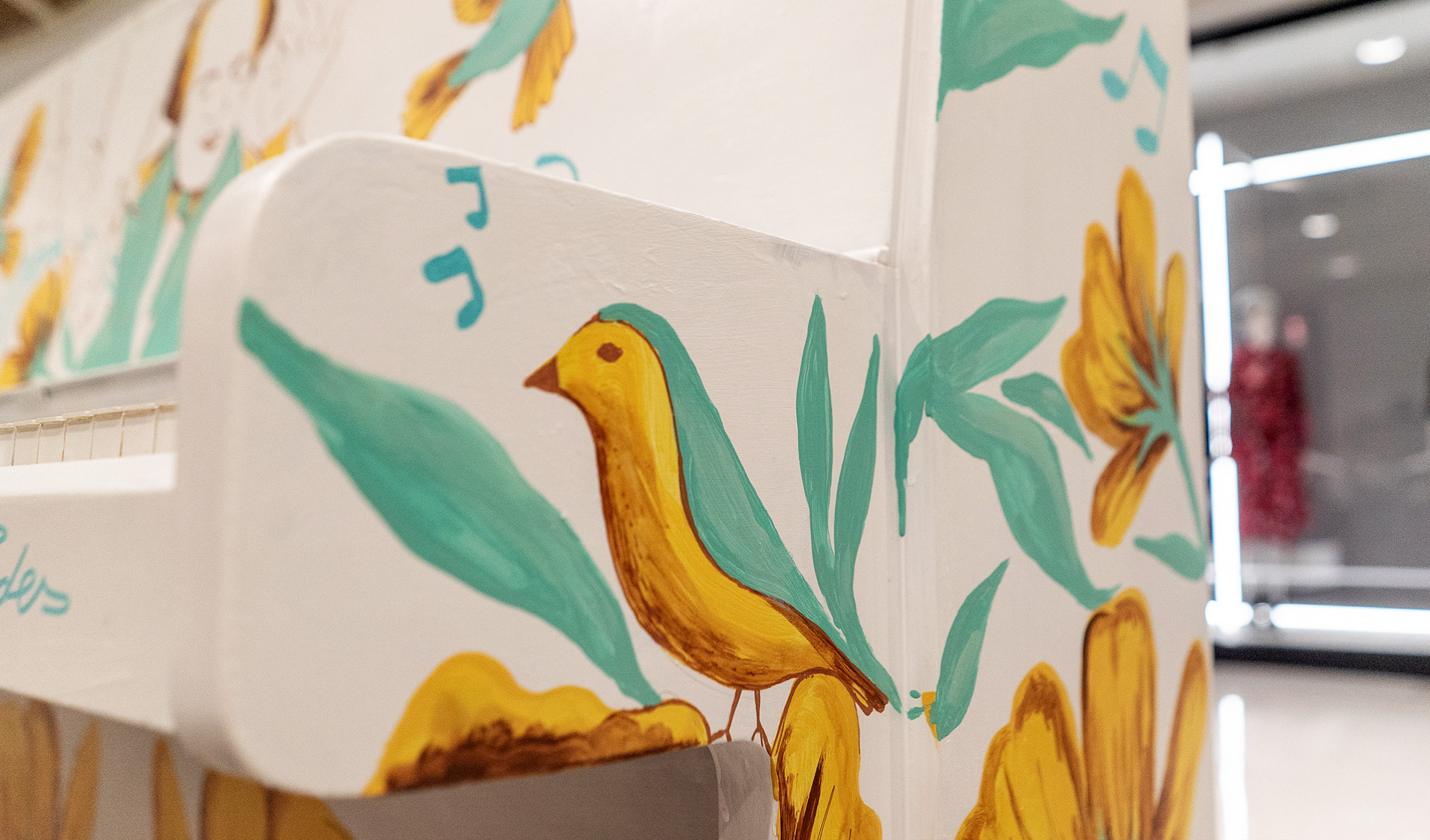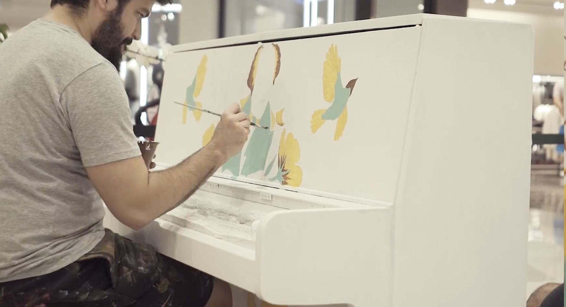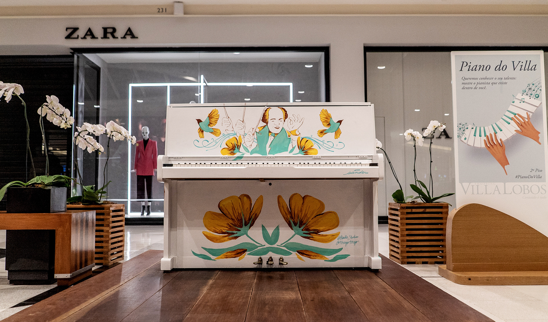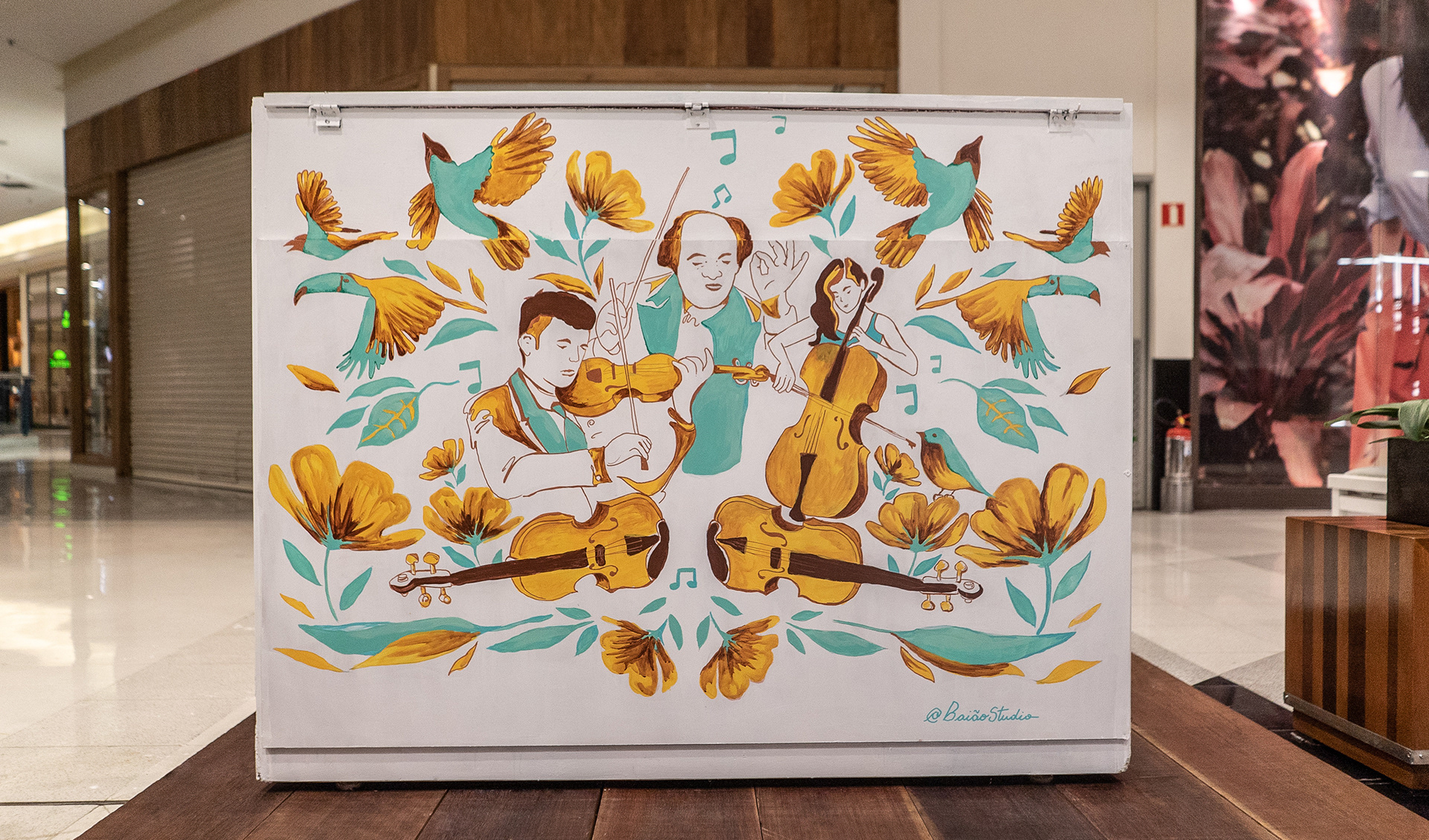Live painting no piano do Shopping Villa Lobos, em São Paulo, em 2018. A ilustração foi inspirada em uma das últimas composições de Heitor Villa-Lobos, chamada "A Floresta do Amazonas" (1959).